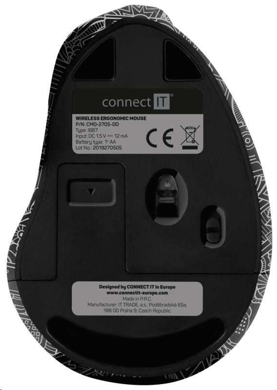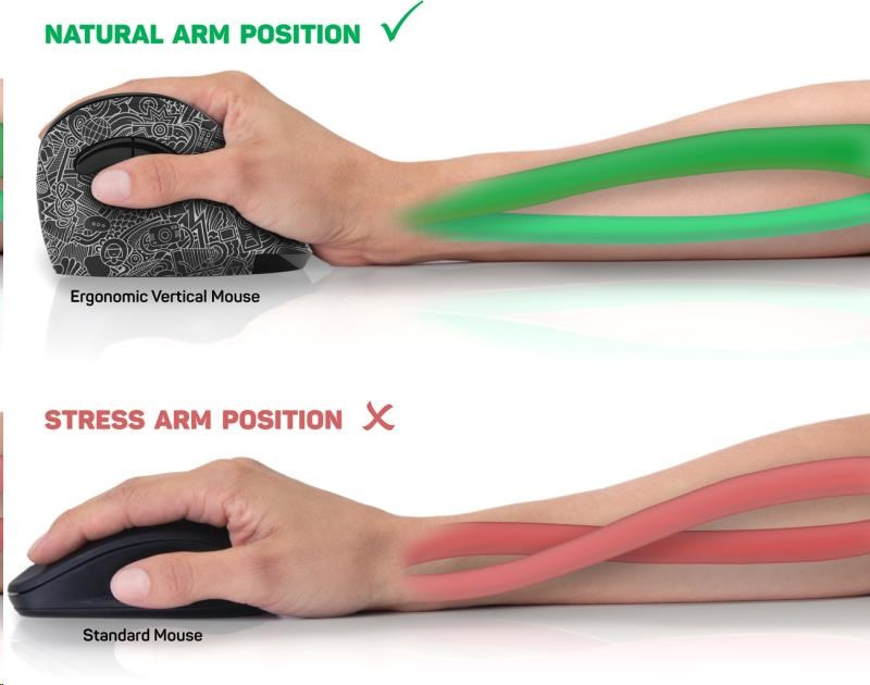 BAZAR - CONNECT IT FOR HEALTH DOODLE ergonomická vertikální myš, (+ 1x AA baterie zdarma), bezdrátová - Poškozený obal
