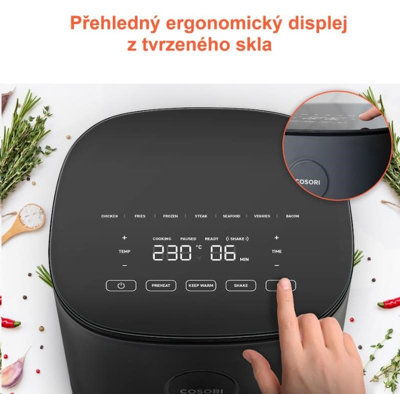 Teplovzdušnou fritézou COSORI CAF-L501-KEUE si môžete užiť vaše obľúbené vyprážané jedlá bez výčitiek, pretože na rozdiel od bežného vyprážania alebo fritovania je v tejto fritéze možné pripravovať jedlá za použitia veľmi malého množstva oleja alebo vôbec žiadneho. Kombinácia cirkulujúceho horúceho vzduchu, dokonalej teploty varenia a chytrých programov zaistí, že hranolky budú vždy krásne chrumkavé a kuracie stehná šťavnaté. Či už je vaše jedlo čerstvé alebo mrazené, stlačením tlačidla môžete horúcim vzduchom smažiť kuracie krídla, kuracie prsia, sladké zemiaky, steaky, čerstvé hranolky a mnoho ďalšieho. Až budete mať hotovo, čistenie bude veľmi jednoduché vďaka nepriľnavému košu, ktorý je možné umývať v umývačke. Vďaka nádobe s objemom 4,7 l navyše dokážete rýchlo navariť aj väčšie porcie jedla.