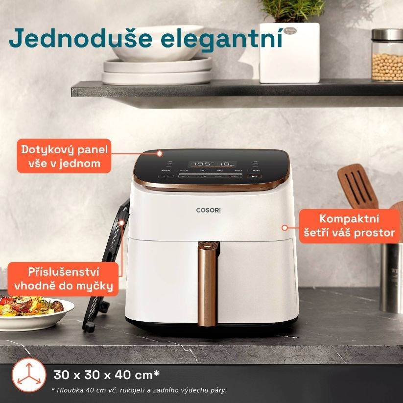 Aj pri vysokej kapacite si Cosori TurboBlaze zachoval kompaktné rozmery a ľahko sa vmestí do každej kuchyne.