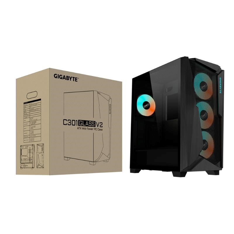 BAZAR GIGABYTE case GB-C301G V2, Mid Tower, 1xUSB-C 3.2, 2xUSB 3.0, ARGB Hub, 4x 120mm ARGB Fan, černá (POŠKOZENÝ OBAL)