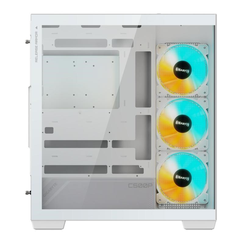 Predné a bočné panely sú vyrobené z 4mm tvrdeného skla, ktoré ponúka 270° panoramatický výhľad na vnútornú zostavu. To umožňuje používateľom ľahko predviesť svoje prispôsobené PC zariadenie. Konštrukcia oboch sklenených panelov bez vŕtania znižuje riziko poškodenia a zvyšuje celkovú vizuálnu atraktivitu.