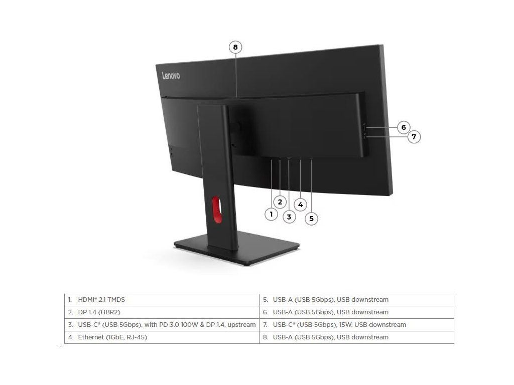 BAZAR - LENOVO LCD T34WD-40 - 34",VA,matný,21:9,3440x1440,120Hz,4ms,300cd,3000:1,HDMI,DP,USB-C,PD100W,RJ45 - pošk. obal