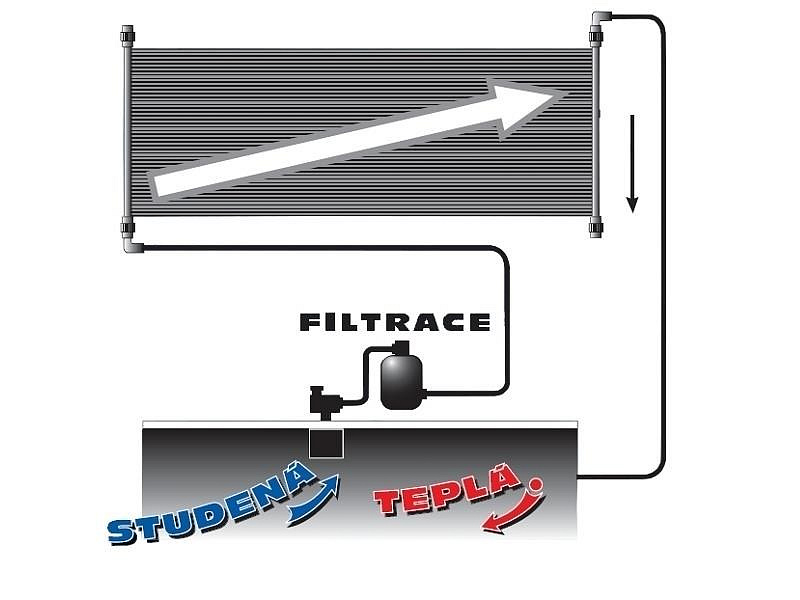 Solárny panel Slim 180 pohlcuje tepelnú energiu slnečných lúčov a odovzdáva ju vode, ktorá ním preteká. Chladná voda z bazéna je pomocou bazénovej filtračnej sústavy vháňaná do solárneho panelu, kde sa ohrieva a vracia sa späť do bazéna. Solárny panel Slim napojíte na hadice o priemere 32 aj 38 mm.