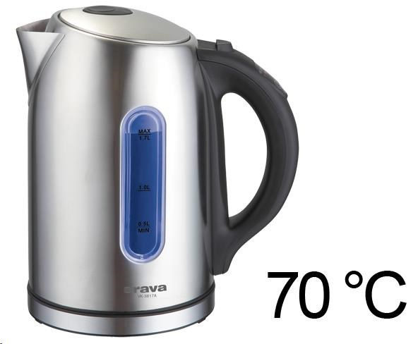 Nerezová rýchlovarná kanvica VK-3817 A s príkonom 2000 W a objemom 1,7 l. Kanvica umožňuje elektronicky regulovať teplotu vody, zohrievať na vopred zvolenú teplotu. Nastavenie 5-ich rôznych teplôt a stupnice sa mení podľa farieb.