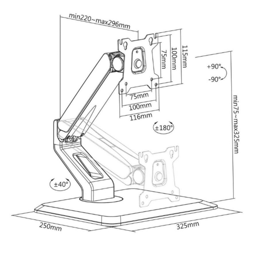 Rozbalené, kompletnéErgonomický stolný stojan na monitor Fiber Mounts FRIOS Polohovateľný stolný stojan na monitory 15-32" pre ergonómiu Vašej práce, nastaviteľná výška, otáčanie do strán, veľký rozsah naklápaní, VESA 75x75 a 100x100, nosnosť 10kg Designový stolný stojan pre skvelú ergonómiu pri práci s monitormi. Stojan je ideálny na monitory s uhlopriečkou 15-32", umožňuje nastavenie výšky 75-325mm, naklápanie v veľkom rozsahu až 90°, otáčanie na obe strany +/- 40° a podporuje aj funkciu pivot. Konštrukcia je upravená pre vedenie káblov. Rozmery stabilnej podstavy 325x250mm. Podporuje VESA štandardy 75x75 a 100x100 a maximálne zaťaženie je 10kg. Rukoväť obsahuje plynovú pružinu pre nastavenie podľa hmotnosti monitora, preto je výškové polohovanie extrémne jednoduché a rýchle. Stojan je možné použiť aj na menšie televízory s uhlopriečkou do 32". Držiak je vhodný aj pre používanie dotykových monitorov. Stolný ergonomický stojan na monitory 15-32" ľahko polohovateľný Fiber Mounts FRIOS Technické údaje: nosnosť 10kg podpora VESA štandardov 75x75 a 100x100 vhodný na monitory a menšie televízory 15-32" vynikajúca ergonómia výškové polohovanie 75-325mm otáčanie do strán +/- 40° naklápanie +/- 90° pivot +/- 180° rozmery podstavy: šírka 325mm, hĺbka 250mm plynová pružina pre jednoduché a rýchle nastavenie výšky veľmi pekný dizajn vynikajúca kvalita, skvelá stabilita, jednoduchá inštalácia systém pre vedenie káblov farebné prevedenie čierne záruka 3 roky Ergonomický stojan na monitormi Fiber Mounts M8C95Podstavec - stojan na monitor, ergonomický, ľahko polohovateľný Fiber Mounts M8C95 Monitorový stojan podporuje VESA štandardy: VESA 75x75 VESA 100x100 Inovatívny držiak monitora so stojanom je navrhnutý pre jednoduché používanie klasických, prehnutých alebo dotykových monitorov. Vďaka tomuto držiaku si vytvoríte ergonómický pracovný priestor doma aj v kancelárii. Držiak monitora je vhodný pre monitory alebo televízory s uhlopriečkou od 15" do 32" so štandardom VESA s rozmermi 75x75 alebo 100x100 a hmotnosťou do 10 kg. Vďaka širokým možnostiam nastavenia môžete monitor nastaviť v ideálnom uhle.