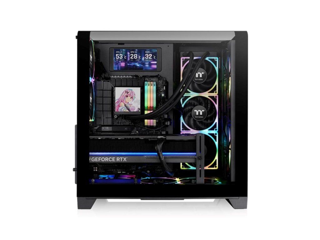 Skrinka View 390 Air Mid Tower je skrinka ATX s bočným a horným panelom z tvrdeného skla, perforovaným predným panelom, otočnými slotmi PCI-E, držiteľom GPU a dvoma zadnými ventilátormi CT120. Pojme až jedenásť ventilátorov 120mm a podporuje 360mm radiátor AIO v prednej časti alebo na strane základnej dosky. Pre zobrazenie systémových informácií v reálnom čase a vylepšené vizuálne efekty je možné pridať voliteľnú sadu 6" LCD obrazovky.