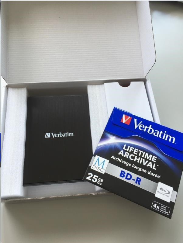 Popis BAZAR - VERBATIM externí mechanika Slimline Blu-ray Rewriter USB 3.0 Zdarma BR Disc 25GB (CD DVD BD Mdisc) +NERO - Poško