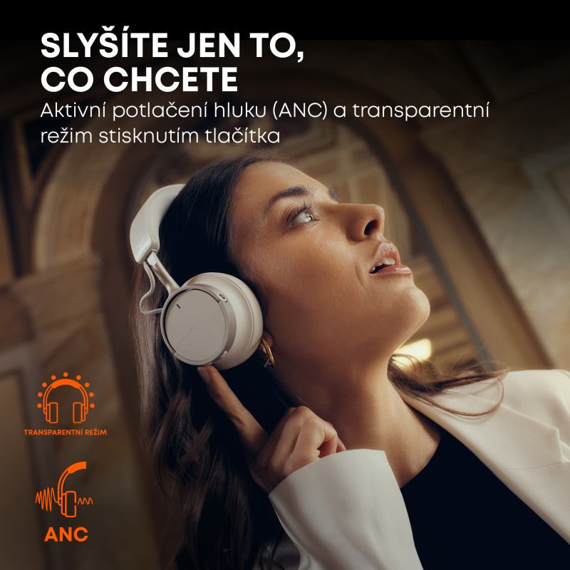 Zvuk bez kompromisov pre každú situáciu: Aktívne potlačenie hluku (ANC), režim priepustnosti (Transparency Mode) a dokonalá zrozumiteľnosť reči pre mobilné schôdzky a hovory (Qualcomm cVc).
