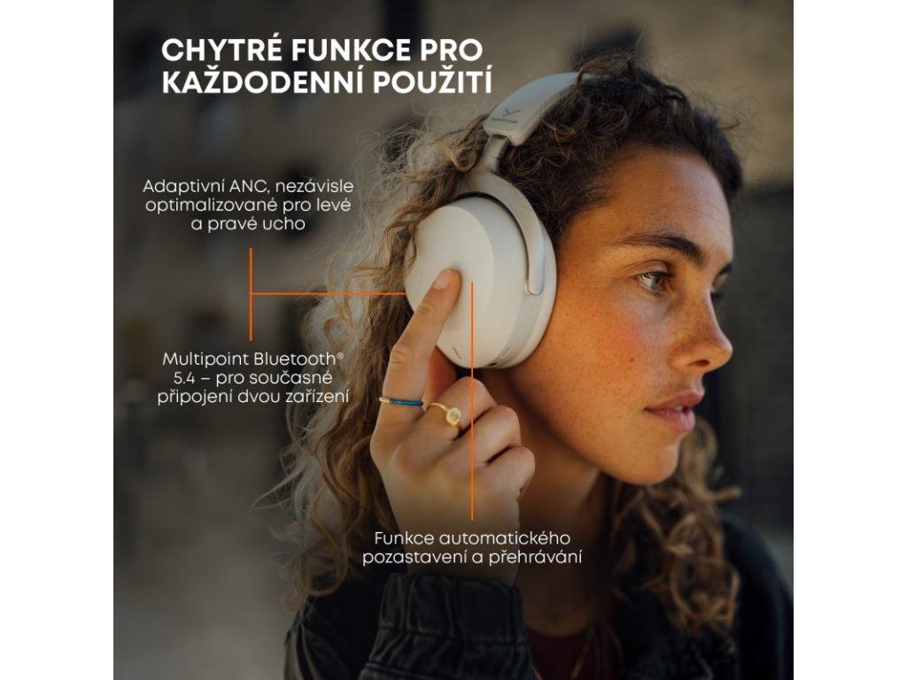 Uniknite chaosu okolitého sveta. Naše špičkové adaptívne hybridné ANC inteligentne analyzuje okolie a eliminuje rušivé zvuky skôr, ako sa dostanú k vašim ušiam. Potrebujete sa na chvíľu vrátiť do reality? Jediným dotykom aktivujete transparentný režim a budete opäť v obraze bez toho, aby ste si museli slúchadlá skladať.