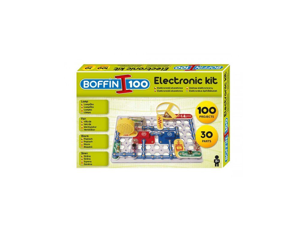 Elektronická stavebnica Boffin 100 obsahuje 30 súčiastok, z ktorých môžete postaviť 100 projektov.