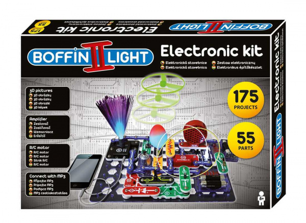 Všetko sa dozviete s elektronickou stavebnicou Boffin LIGHT, ktorá obsahuje viac ako 50 súčiastok, z ktorých môžete postaviť projekty: