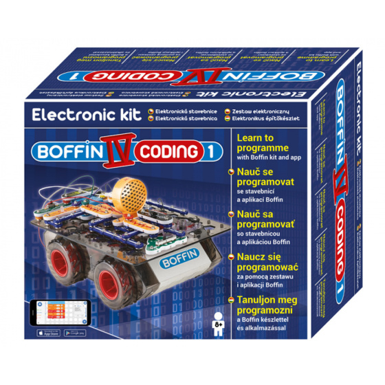 Nauč sa to všetko s elektronickou stavebnicou Boffin IV Kódovanie, ktorá obsahuje viac ako 40 komponentov, z ktorých si môžeš zostaviť a následne naprogramovať projekty:
