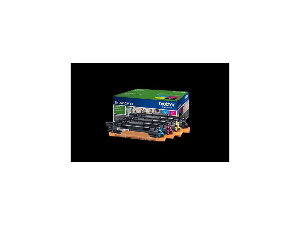 Originální toner Brother TN-243CMYK výhodné balení. Obsahuje azurovou, purpurovou, žlutou a černou tonerovou kazetu. Každá kazeta vytiskne až 1000 stran. Kompatibilní s řadou tiskáren. https://www.brother.cz/supplies/laser/toner/tn/tn243cmyk Naše snadno instalovatelné kazety vám pomohou vytvářet dokumenty s dlouhou životností.Vlastnosti: Vytiskne až 1 000 stran podle ISO/IEC 19752 Azurová, purpurová, žlutá a černá tonerová kazeta v jednom balení Vysoce kvalitní tištěné dokumenty