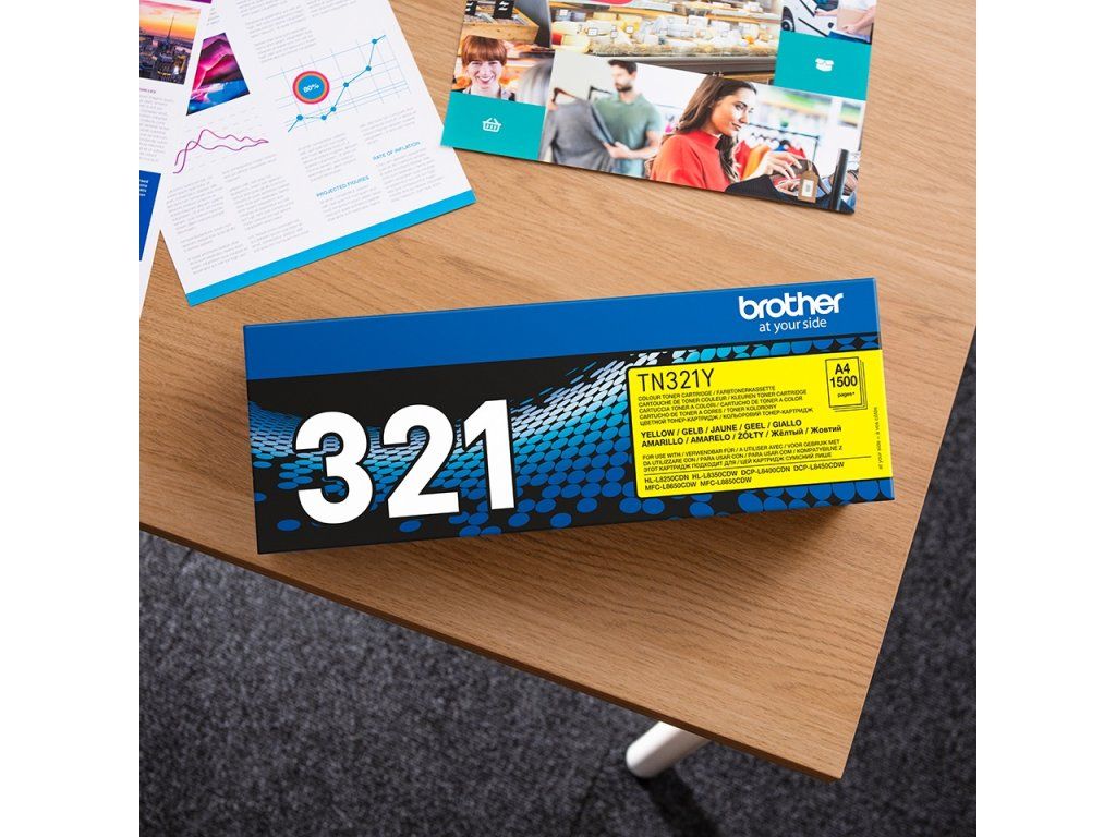 TN321Y je tisková kazeta pro laserové tiskárny Brother DCP-L8400, DCP-L8450, HL-L8250, HL-L8350, MFC-L8650, MFC-L8850, které umožňují pohodlný tisk především dokumentů do formátu A4. Samozřejmostí je vysoká tisková spolehlivost a především vysoce kvalitní a ekonomický tisk. Pro tento toner žluté barvy se udává výdrž až cca 1500 stránek při 5% pokrytí.Dodatočné parametre