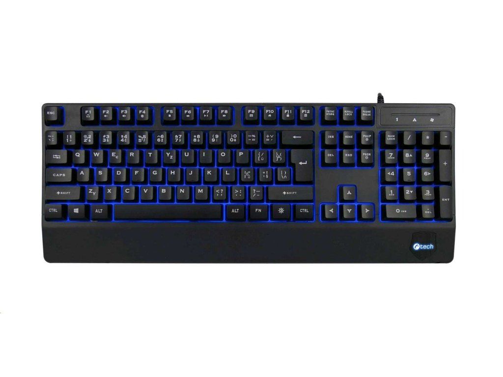 Klávesnica C-TECH KB-104BK, USB, 3 farby podsvietenia, čierna, CZ/SK