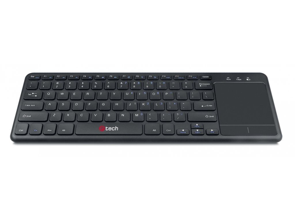 Bezdrátová klávesnice s touchpadem C-TECH WLTK-01 je ideálním řešením pro Váš obývací pokoj. Klávesnice je kompatibilní s většinou smartTV, Android, Chrome OS a Windows, čili Vám garantuje velmi pohodlnou obsluhu všech Vašich multimediálních zařízení. Klávesnice má plnou českou, i slovenskou lokalizaci. Pro ještě větsí pohodlí při užívání WLTK-01 Vám poslouží sada multimediálních kláves, multi-touch touchpad, kompaktní rozměry a malá hmotnost klávesnice. SPECIFIKACE Kláves: 78 Připojení: bezdrátové 2,4G (přijímač USB) Maximální provozní vzdálenost: 10m Touchpad: 74 x 90 mm Napájení: 2x AAA Velikost: 366 x 121 x 18 mm Hmotnost: 250g Odkaz na stránky výrobce http://www.c-tech.cz/klavesnice-c-tech-wltk-01--bezdratova-klavesnice-s-touchpadem--cerna--usbDodatočné parametre