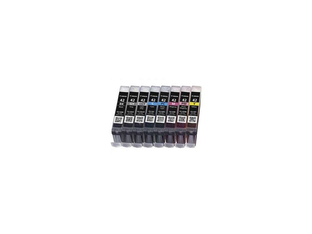 Společnost Canon se již dlouhou dobu zabývá výrobou kvalitních laserových a inkoustových tiskáren společně s potřebným příslušenstvím. V tiskárnách a multifunkčních zařízeních najdete nové a pokrokové technologie, které vylepšují kvalitu tisku, životnost tiskáren a rychlost tištěných stránek. Canon CLI-42 Multipack je praktické balení, které obsahuje černou, azurovou, purpurovou, žlutou, světle šedou, šedou, fotografickou azurovou a fotografickou purpurovou náplň. Tyto náplně jsou určené pro inkoustovou tiskárnu Canon Pixma Pro-100. Výhodou originální cartridge je 100% kompatibilita s produkty a maximální kvalita tisku, kterou nelze s neoriginálními náplněmi dosáhnout. Objem: 8 x 13 mlDodatočné parametre