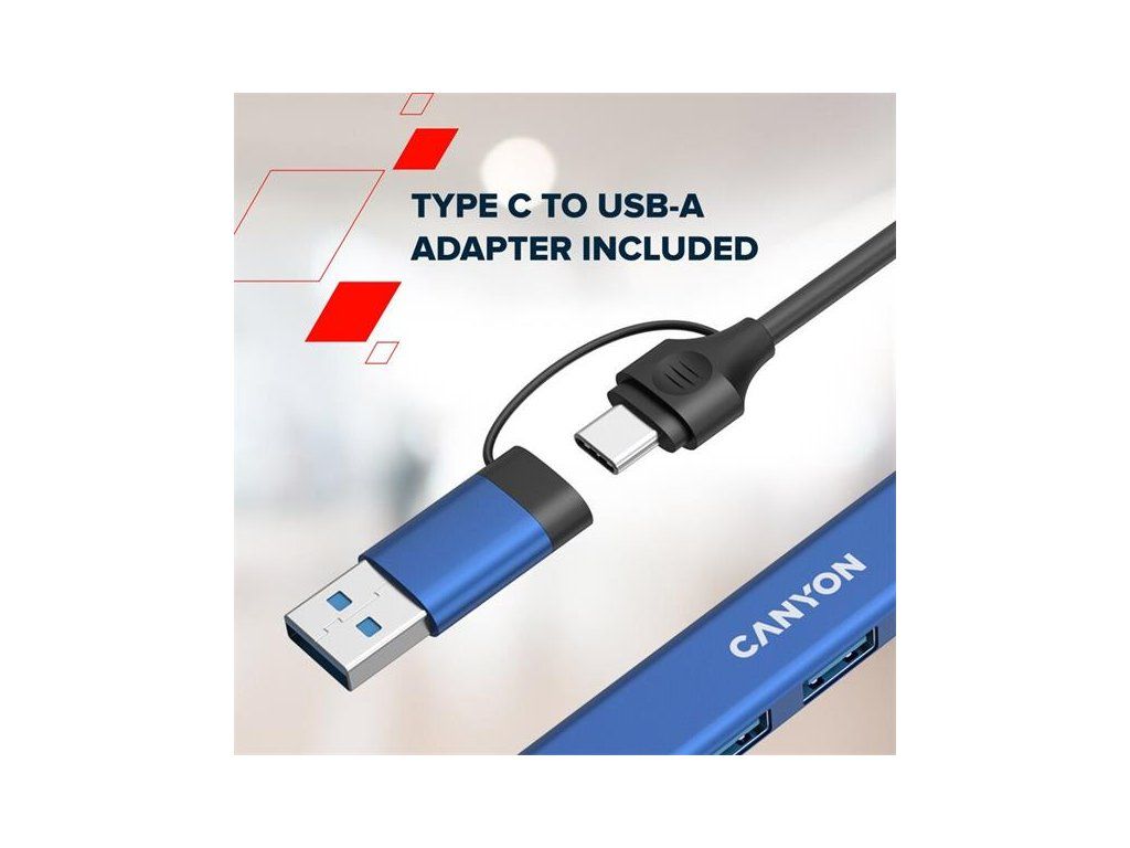 Canyon DS-02, USB-C Hub, 4 porty, 3xUSB 2.0 480Mbps, 1xUSB 3.0, 5Gbps, USB-C/USB-A adaptér, zelená