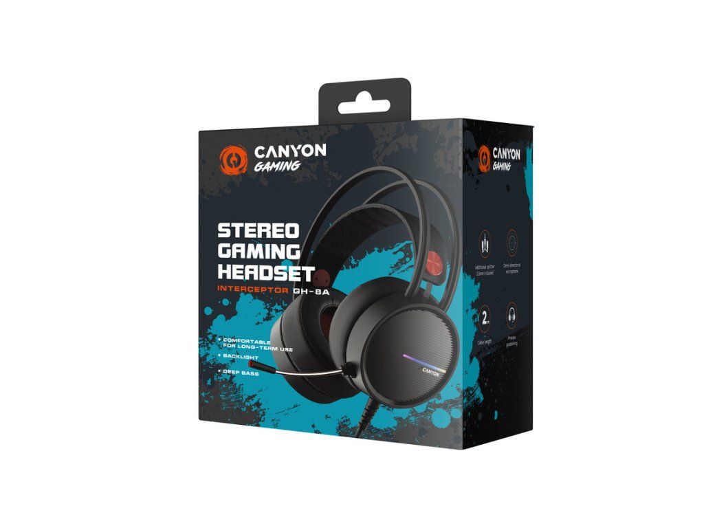 Canyon GH-8A, Interceptor herný headset pre náročných hráčov, USB / 2x 3.5mm jack, čierny