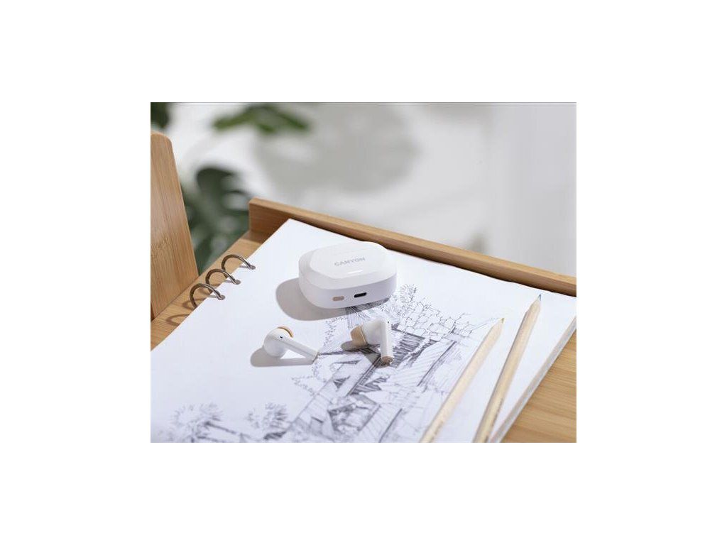 Canyon Hexagon 7, True Wireless Stereo Bluetooth 5.4 slúchadlá do uší. ANC, ENC funkcie, výdrž 27 hod, béžovo-biele