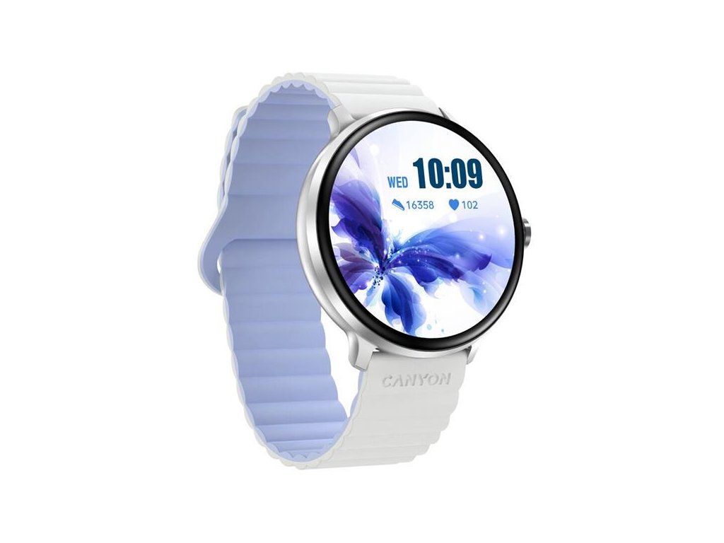 Canyon SW-69, Jacky, smart hodinky, BT, fareb. LTPS displej 1,3", vodotes. IP68, 25 športov, bielo/modré