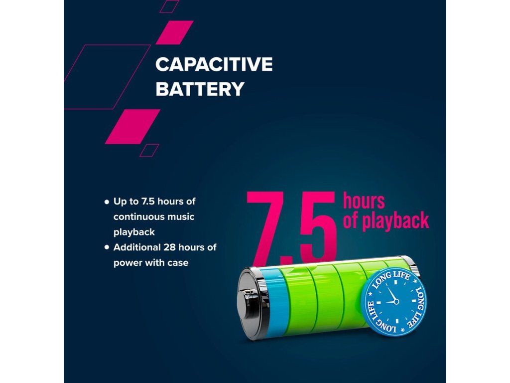 S výdržou až 7,5 hodiny nepretržitého prehrávania a nabíjacím puzdrom, ktoré poskytuje ďalších 18 hodín energie, si môžete vychutnať svoju obľúbenú hudbu bez prerušenia. Navyše pohodlná funkcia bezdrôtového nabíjania uľahčuje udržiavanie slúchadiel v nabitom stave.