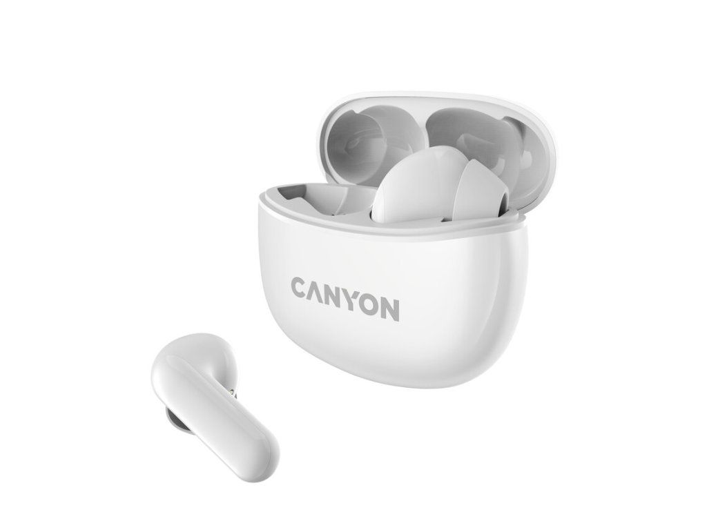 Canyon TWS-5, True Wireless Bluetooth slúchadlá do uší, USB-C nabíjanie, nabíjacia stanica v kazete, biele