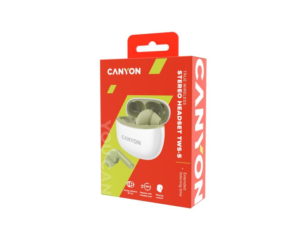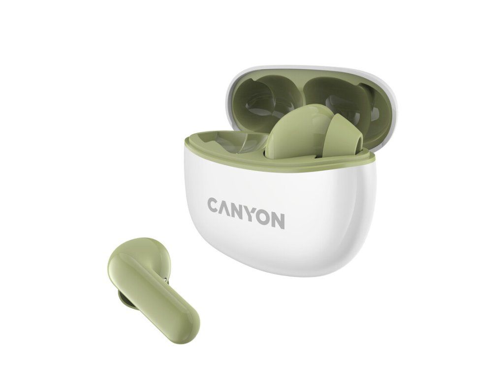Canyon TWS-5, True Wireless Bluetooth slúchadlá do uší, USB-C nabíjanie, nabíjacia stanica v kazete, zelené
