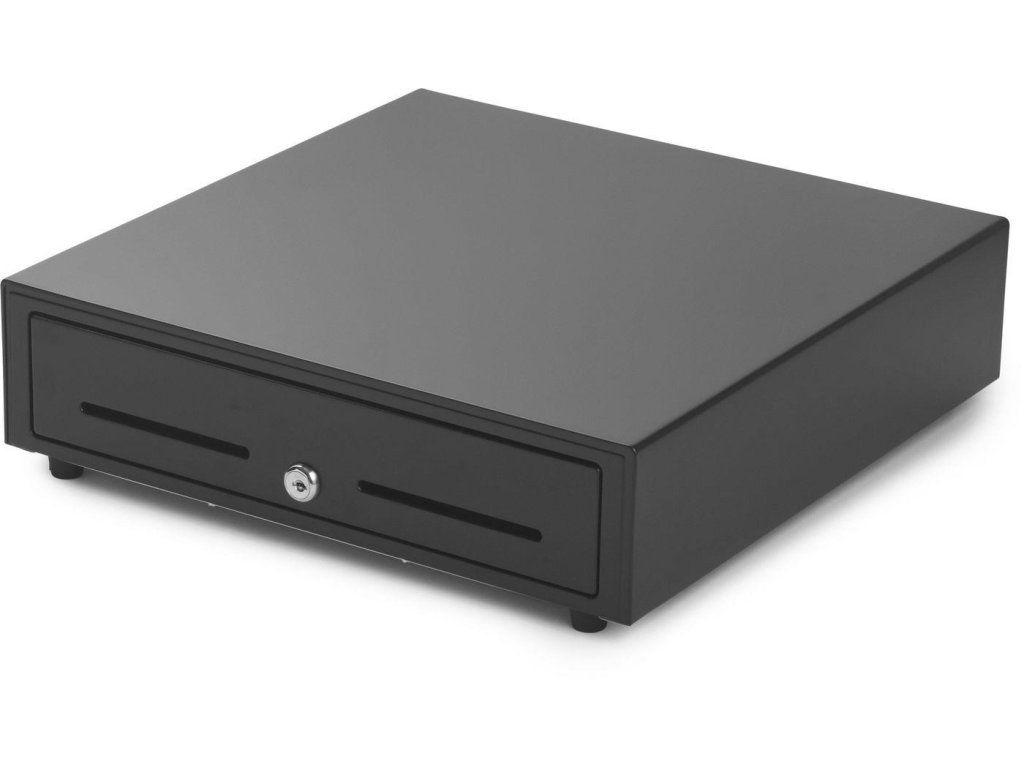- Kovová pokladničná zásuvka s guľôčkovým ložiskom pre veľké zaťaženie - Ochranná konštrukcia - Vrátane priehradky na bankovky: nastaviteľné priečky až pre 4 priehradky (s 4 kovovými sponami) - Vrátane priehradky na mince: dvojradová s nastaviteľnými priečkami pre 8 priehradiek - Otvor na médiá s predným prístupom pre šek, potvrdenie o kreditnej karte alebo akýkoľvek papier - 3-polohový zámok na kľúč - 6V, 12V, 24V pre rozhranie tlačiarne účteniek RJ11 / RJ12