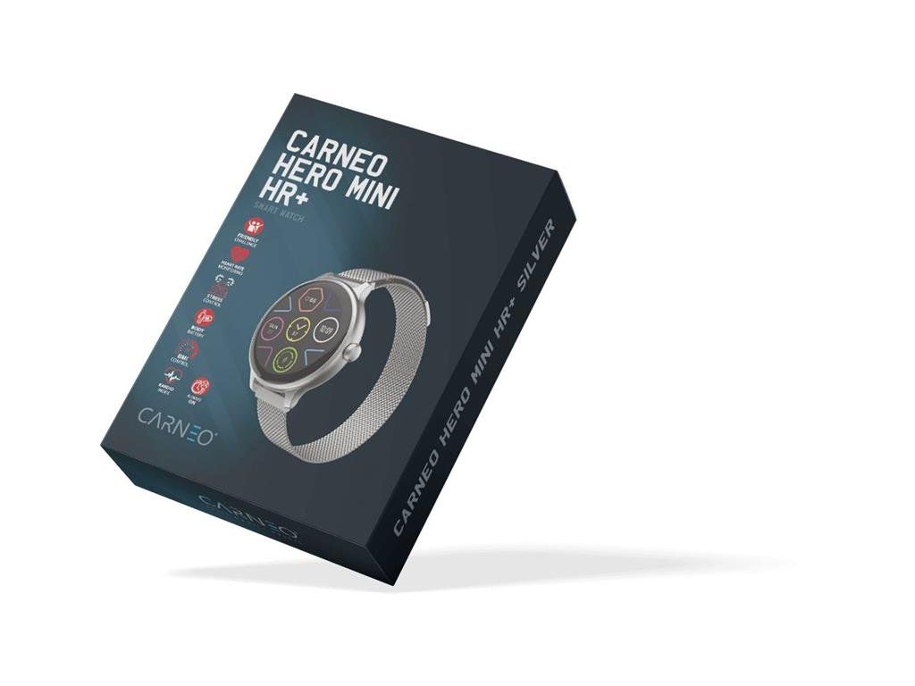 Všetky dáta vašej aktivity Moderné fitness smart hodinky Carneo HERO mini HR+ v elegantnom striebornom prevedení disponujú okrúhlim Super HD AMOLED farebným displejom. Umožňujú meranie srdcového tepu, stresu, BMI, prejdenej vzdialenosti, monitorovanie spálených kalórií či kvality spánku. Ich súčasťou je 230mAh batéria s výdržou 3 až 4 dni. Podľa certifikácie IP67 sú odolné voči vode a prachu. Sú kompatibilné s operačným systémom iOS a Android. Hodinky majú luxusný Milánsky, kovový remienok v striebornej farbe, ktorý je možné vymeniť za silikónový remienok v inej farbe či kožený a tým pádom zmeniť hodinkám manažérsky vzhľad za športový. Vkusný, jednoduchý a luxusný dizajn sa ľahko kombinuje k obleku či voľnočasovému outfitu. Hodinky aj aplikácia sú kompletne v slovenčine, takže si budete určite spolu dobre rozumieť. Súčasťou balenia je aj silikónový, bledošedý remienok. Vlastnosti smart hodiniek Carneo HERO mini HR+ strieborné Funkcia always on pre permanentné zobrazenie času na displeji Telefonovanie priamo z hodiniek vďaka funkcii BT call Super HD AMOLED displej Automatické meranie tepu srdca 24/7 Funkcia energia tela Meranie stresu 13 športových režimov Meranie krvného tlaku a okysličenia krvi Dlhá výdrž na jedno nabitie až 3-4 dni Monitor kvality spánku Unikátna funkcia kardio index Prémiové kovové prevedenie Prémiovo spracované kovové telo s hrúbkou len 11mm osadené super Amoled displejom o veľkosti iba 1,1“ vám prináša krištáľovo čistý obraz a zaručí výbornú čitateľnosť za každých svetelných podmienok. Šport pod drobnohľadom Dokážu zmeraťaž 13 športových aktivít 13 športových režimov (Chôdza, Beh, Beh v interiéry, Turistika, Cyklistika, Eliptický trenažér, Jóga, Švihadlo, Veslovanie, Stacionárny bicykel, Fitness, Tenis, Kriket). Prehľadné zobrazenie aktivity a notifikácie Prehľadné zobrazenie všetkých potrebných údajov pri aktivite, ako sú aktuálny srdcový tep, vzdialenosť, spálené kalórie, celkový čas aktivity, resp. zobrazenie trasy na mape vďaka GPS v telefóne. Samozrejmosťou je zobrazovanie správ a notifikácií priamo na hodinkách, takže máte prehľad o všetkom podstatnom, čo sa deje, priamo na vašej ruke. Meranie životných funkcií Meranie srdcového tepu permanentne v priebehu športovej aktivity, vrátene zobrazenia Vašich zón srdcovej frekvencie. Monitorovanie tepu v priebehu celého dňa 24/7, aj mimo športovej aktivity. Monitoring spálených kalórií s možnosťou nastavenia denného cieľa. Meranie krvného tlaku a okysličenie krvi "saturácie". Upozornenie: Všetky namerané údaje sú iba informačné a môžu sa líšiť od nameraných hodnôt profesionálnych prístrojov, preto ich nieje možné považovať za záväzné. Veľký výber ciferníkov Zmena štýlu či nálady? Nie je problém, hodinky disponujú veľkým množstvom moderných ciferníkov. Samozrejmosťou je možnosť vytvorenia vlastného ciferníka s použitím vlastnej fotky čo vás odlíši od ostatných užívateľov týchto elegantných hodín. Prečo kúpiť fitness smart hodinky CARNEO HERO mini HR+? Dokážu presne sledovať vaše pohybové aktivity, počítajú spálené kalórie, počet prejdených krokov a veľa ďalších parametrov. Telefonovanie priamo z hodiniek bez potreby ovládať telefón Ich špecialitou je potom už spomínané automatické meranie tepu srdca, krvného tlaku a okycličenia krvy 24h/7dní. Možnosť výberu z 13 športov (Chôdza, Beh, Beh v interiéry, Turistika, Cyklistika, Eliptický trenažér, Jóga, Švihadlo, Veslovanie, Stacionárny bicykel, Fitness, Tenis, Kriket). Automatické meranie stresu počas celého dňa. Sprievodca dychovým cvičením na zníženie stresu. Super HD AMOLED displej z vysokým rozlíšením 360x360 Funkcia always on pre permanentné zobrazenie času na displeji počas celého dňa. Ovládanie hudby + vzdialené ovládanie fotoaparátu v telefóne. Meranie krvného tlaku a okysličenia krvi "saturácie". Budík - (max. 3). Veľké množstvo ciferníkov + vytvorenie vlastného ciferníka. Pripomínanie dodržiavania pitného režimu. Kontrola pohybu s upozornením na nečinnosť. Zobrazenie aktuálneho počasia s predpoveďou na 6 dní. Funkcia Body battery vyobrazujúca stav energie Vašeho tela počas celého dňa. Funkcia kardio index Vás informuje o aktuálnom stave, zdraví Vašeho srdca. Vaše BMI máte vždy k náhľadu v aplikácii, čo vás môže neustále motivovať k ďalším a ďalším aktivitám. Denné, týždenné, mesačné a ročné štatistiky všetkých nameraných hodnôt s anonymným porovnaním so všetkými užívateľmi vo Vašom veku a pohlaví, pre ešte väčšiu motiváciu byť najlepší. Funkcia priatelia na spoločné športovanie, porovnávanie, podporu a motiváciu. Sledujú aj spánok a prinášajú zaujímavú funkcionalitu v podobe identifikácie volajúceho, takže nebudete musieť siahať pre mobil do vrecka, aby ste vedeli, kto vám volá. Všetky dôležite informácie sa zobrazujú na AMOLED HD displeji, ale aj Vo Vašom smartfóne (hodinky sú kompatibilné so systémami Android a iOS). Displej je farebný a skvele čitateľný a zároveň zapustený do hodiniek, takže nikde nepríjemne nevyčnieva. Displej sa rozsvieti jednoduchým otočením zápästia, čítať čas alebo pristupovať k hlavným informáciám je tak možné najprirodzenejším spôsobom, rovnako ako pri pohľade na klasické hodinky. Hodinky sú odolné voči prachu a vode, spĺňajú tak prísnu certifikáciu IP67. S Vaším smartfónom sa spárujú cez úsporné Bluetooth V5.0. Fitnes hodinky boli testované pri každodennom použití a sú úplne návykové, po pár tréningoch s hodinkami CARNEO HERO mini HR+ už nebudete chcieť trénovať s ničím iným. Náhradný, silikónový remienok v bledošedej farbe Vynikajúca APPKA Carneo FIT 