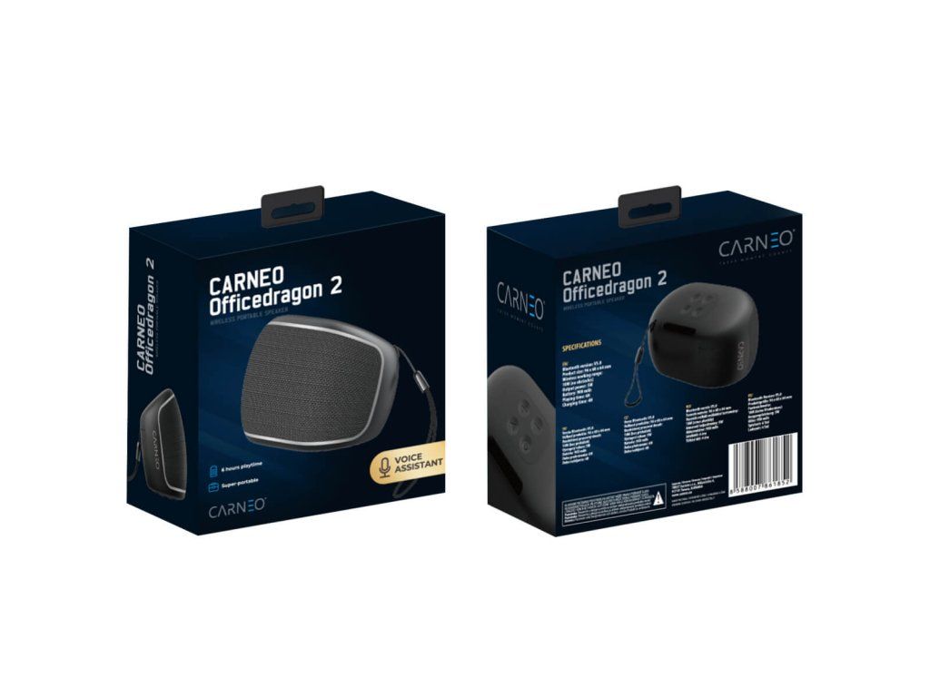 VLASTNOSTI Bluetooth přenosný reproduktor Hands free vyřizování telefonických hovorů Výdrž baterie až 6 hodin Kvalitní zvuk s P.M.P.O výkonem 30W Kvalitní zvuk Kvalitou zvuku si Vás reproduktor s výkonem P.M.P.O. 30W doslova podmaní. Překvapivě čisté výšky a měkké basy si vás získají hned při první přehrávané písni. Stabilitu přenášeného zvuku a ničím nerušený poslech zajišťuje Bluetooth ve verzi 5.0. Pomocí Bluetooth propojíte reproduktor s vaším chytrým telefonem, tabletem nebo počítačem, a to až do vzdálenosti 10 metrů. Možnosti připojení Kromě bezdrátové technologie umožňuje přehrávání hudby z vložených Micro SD karet nebo USB klíče. Hands free vyřizování telefonických hovorů Potřebujete si zatelefonovat? S vestavěným mikrofonem to není žádný problém – hovory vyřídíte během okamžiku. Carneo OfficeDragon má zabudovaný mikrofon, takže jej můžete využít, kdykoli si potřebujete zavolat, ale nechcete držet telefon u ucha. Zvládne těle konferenci v práci i hovory od rozpáleného grilu – vše ve vysoké kvalitě. Nekončící zábava 6 hodinovou výdrž oceníte, nejen když se domácí párty protáhne. Díky výkonné baterii o kapacitě 900 mAh ozvučíte každou aktivitu i bez elektrické zásuvky. Nabití na maximum pak netrvá ani 4 hodiny. OBSAH BALENÍ 1 * Reproduktor CARNEO OfficeDragon 2 1 * USB kabel 1 * Uživatelská příručka TECHNICKÉ PARAMETRY Materiál:Plast Velikost:96 mm * 68 mm * 64 mm Barva:Černá Podpora profilů:A2DP, AVRCP, handsfree Verze Bluetooth:V5.0 Pracovní rozsah:Do 10 metrů Reproduktor:50 mm Výstup reproduktoru:5W Frekvenční odezva:280HZ-16KHz Signál k šumu:95dB Zkreslení:0,5% Napětí baterie:900 mAh Nabíjecí napětí baterie:5V Doba nabíjení baterie:2 až 4 hodiny Vydrž:až 6 hodin Pohotovostní režim:20 hodin Vstupy:AUX - jack