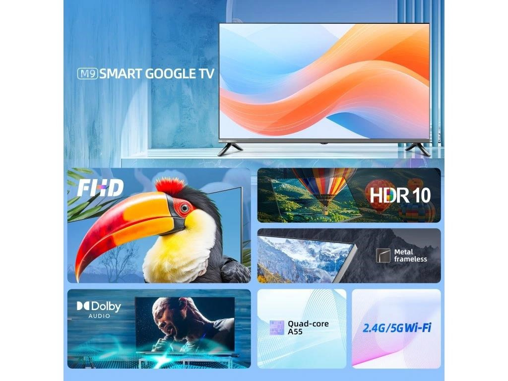CHiQ 40“ L40M9E, metalická bezrámová Smart Google TV s HDR10, HLG, obrazovkou s Full HD s rozlíšením 1920 x 1080 pixelov, Dolby Audio a vylepšeným zvukom dbx-tv.