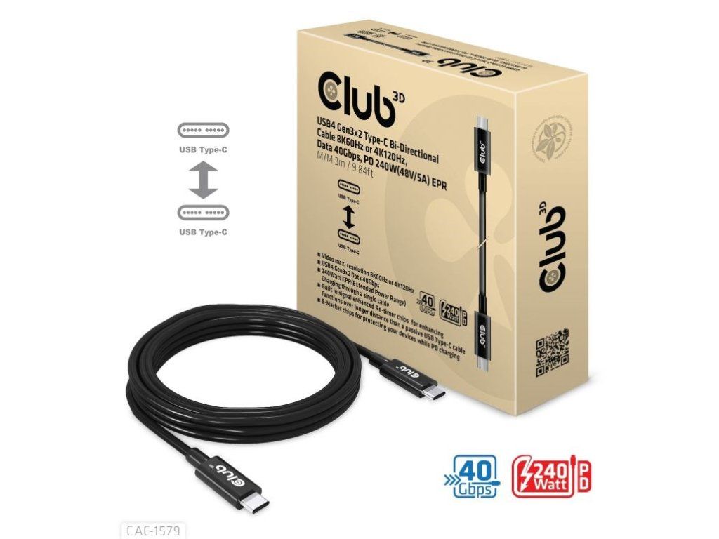 Club3D Kabel USB4 Gen3x2 Typ C 8K60Hz UHD, 40Gbps, Power Delivery 240W, (M/M), 300cm