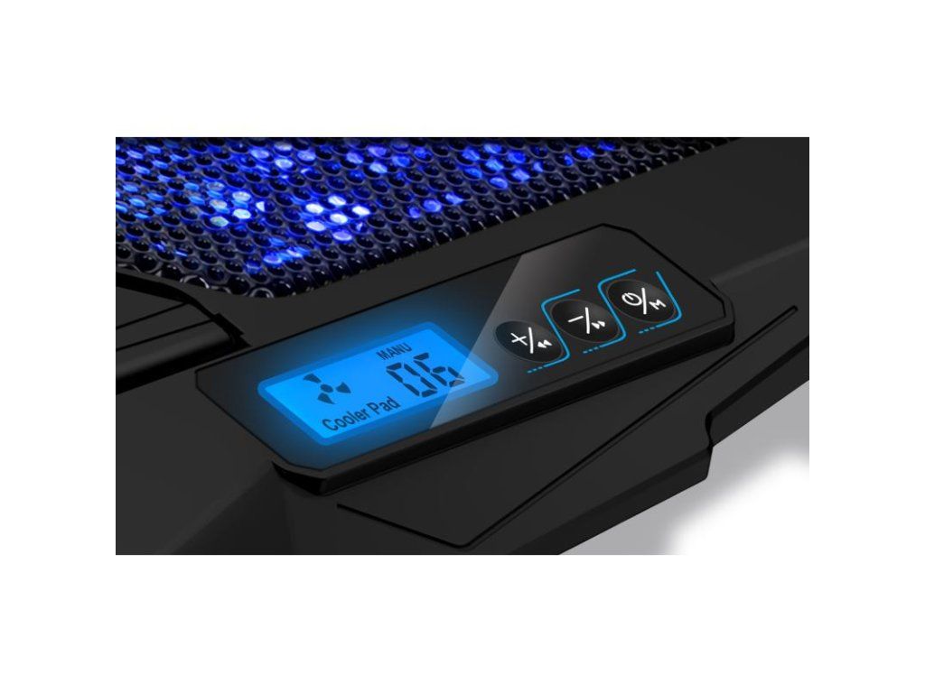 Digitálny displej: Sledujte aktuálny stav ventilátorov a nastavte ich rýchlosť pomocou jednoduchých tlačidiel priamo na podložke.