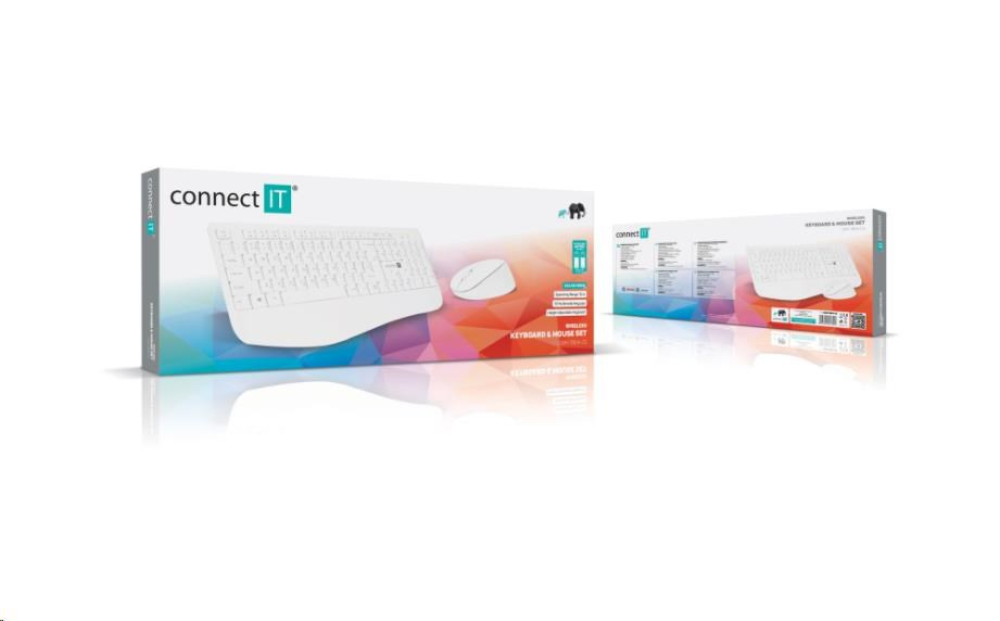 CONNECT IT Combo bezdrôtová biela klávesnica + myš, (+1x AAA +1x AA batérie zdarma), CZ + SK rozloženie