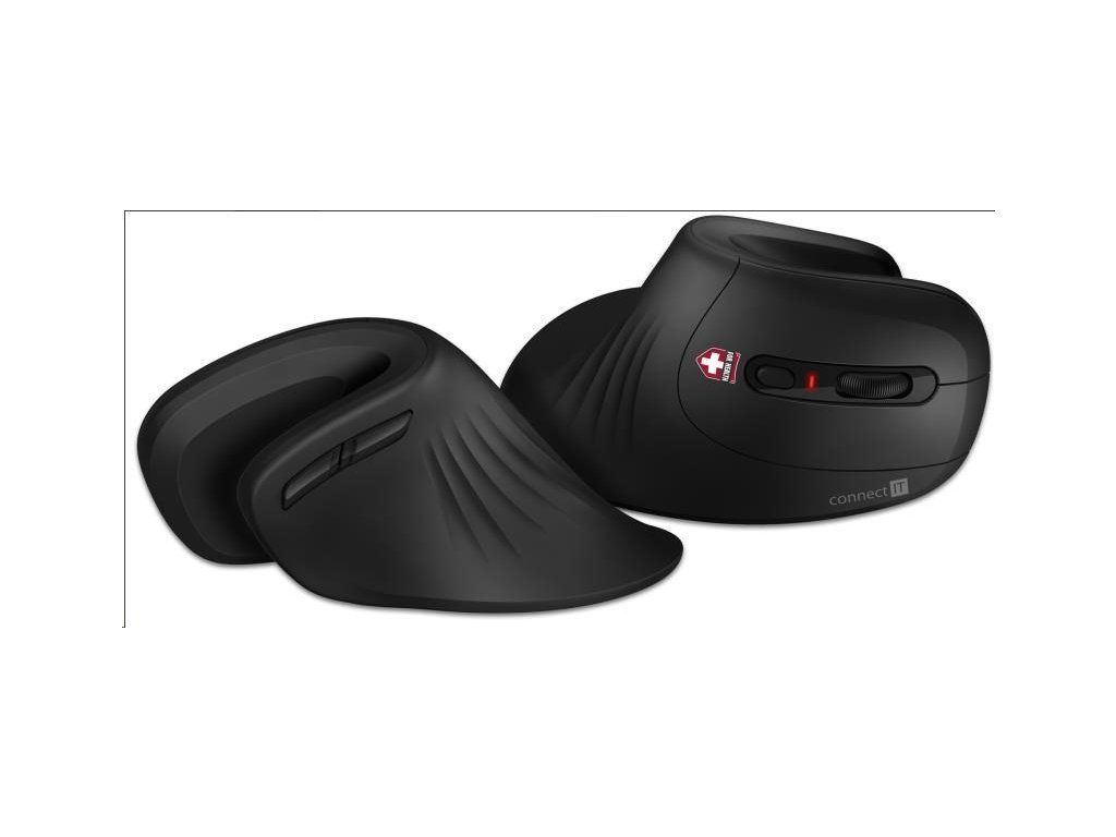 CONNECT IT FOR HEALTH Ergonomická vertikálna myš, (+ 1x batéria AA zdarma), bezdrôtová, ČIERNA