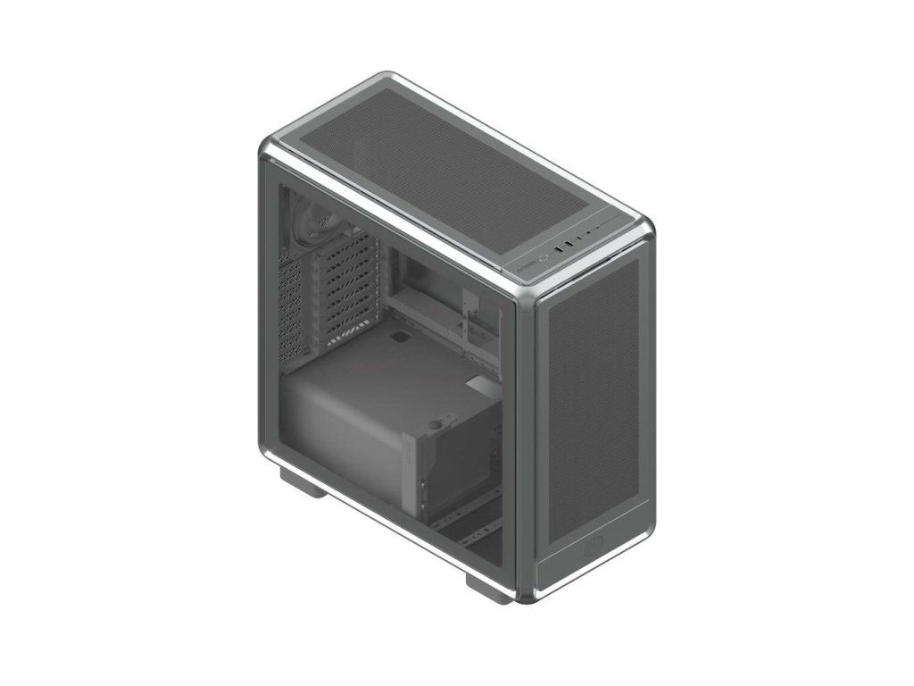 Cooler Master case MasterFrame 600 Mesh Silver ARGB, Průhledná bočnice, ATX, 2x 200mm ARGB Fan, 1x 120mm ARGB Fan, Šedá