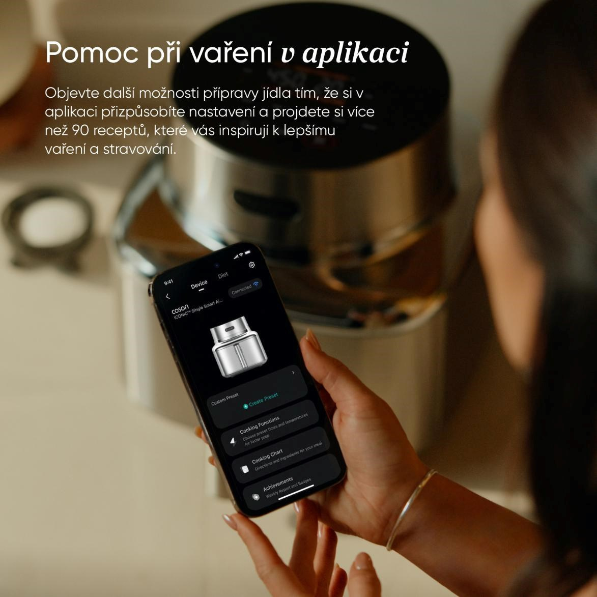 Súčasťou balenia je elegantná kuchárska kniha plná exkluzívnych receptov, ktoré vás budú inšpirovať každý deň. K dispozícii je aj online verzia v češtine, takže môžete pohodlne variť pomocou telefónu alebo tabletu. Každé jedlo sa stane malým kulinárskym rituálom.