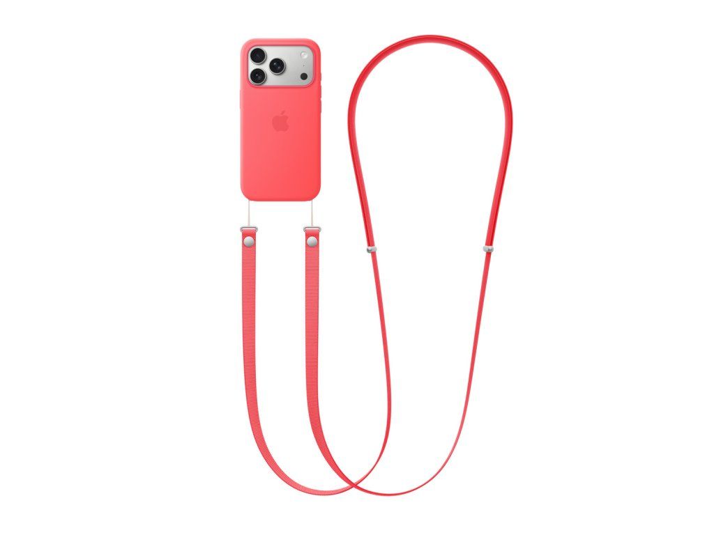 Kompatibilní kryty na iPhone Air: *Ochranný rámeček na iPhone Air *Kryt s MagSafe na iPhone Air Kompatibilní kryty na iPhone 17: *Silikonový kryt s MagSafe Kompatibilní kryty na iPhone 17 Pro a iPhone 17 Pro Max: *Kryt z tkaniny TechWoven s MagSafe *Silikonový kryt s MagSafe Kompatibilní kryty na iPhone 17e: *Silikonový kryt s MagSafe Maximální délka popruhu: 2 080 mm Minimální délka popruhu: 1 080 mm ,