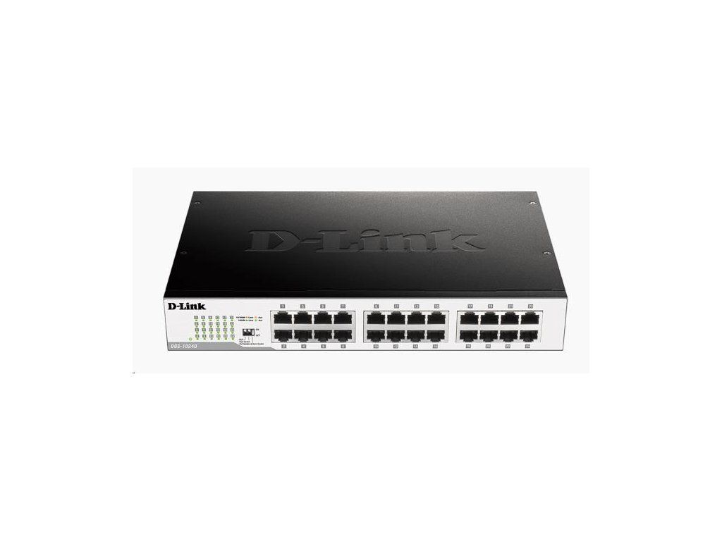 D-Link 24 1000BaseT Gigabit Desktop Switch - Nespravovaný medený gigabitový ethernetový prepínač - 24 x 10/100/1000Mb/s porty s automatickým vyjednávaním - Automatické vyjednávanie MDI-II / MDI-X Cross Over pre jednoduché rozšírenie - Half-/Full-Duplex - IEEE 802.3x Flow Control - Sada na montáž do 19" stojana dodávaná s DGS-1024DGigabitové prepínače s 24 metalickými portami