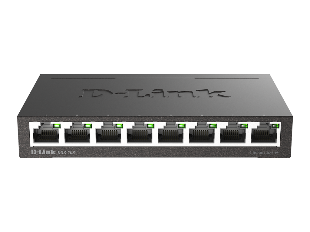 PŘEHLED 8portový gigabitový neřízený stolní přepínač DGS-108 nabízí ekonomický způsob pro malé a střední podniky a malé a střední podniky, jak těžit ze zvýšené šířky pásma gigabitového Ethernetu. Poskytuje osm gigabitových portů pro snadné rozšíření vaší sítě a rychlý způsob upgradu sítě na gigabitové připojení.