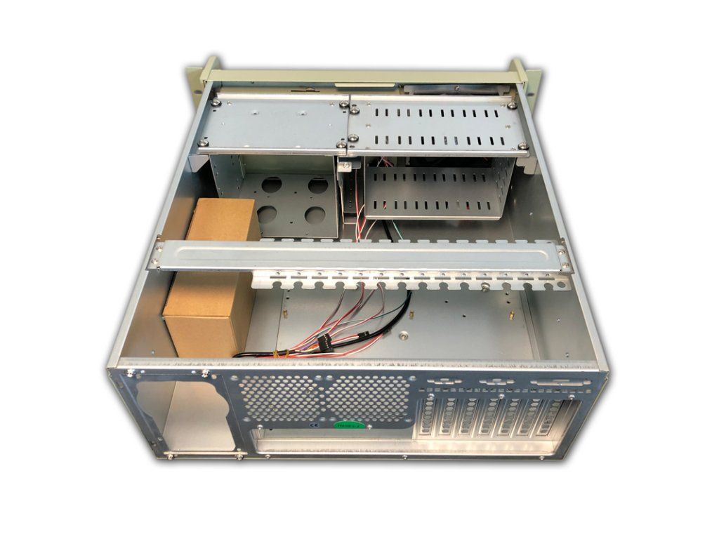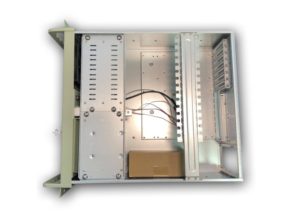 DATACOM 19'' Case IPC 4U/485mm GY bez PSU Přední panel /vše umístěné za zamykatelnými dvířky/: - ON/OFF vypínač - RESET tlačítko - HDD1 LED dioda - HDD2 LED dioda - POWER LED dioda - 2 USB port Kompatibilita s MB: - mATX, ATX, max. 305 x 245 mm Ventilace: - přívod vzduchu - 1ks 120 x 120 v přední části - odvod vzduchu - příprava pro 2ks 80 x 80 mm v zadní části /pouze příprava, ventilátory nejsou součástí balení/ Počet a velikost pozic: - externě dostupné 3 x 5.25'' + 1 x 3.5'' - interně dostupné 6 x 3.5'' Rozměry: - case 178 x 427 x 485 mm (V x Š x H) - case včetně úchytů 178 x 488 x 535 mm (V x Š x H) - balení výrobku 245 x 537 x 605 mm (V x Š x H) | /0,08m3/ Napájecí zdroj: - redundantní PSU nebo standardní ATX PSU (zdroj není součástí balení) Materiál: - pochromovaná ocel (SECC - Steel, Electrically Chromate Coated) Síla materiálu: - 1.0 - 1.2 mm Váha: - váha výrobku: 11 kg / váha výrobku v balení : 12kg Barva: - šedá