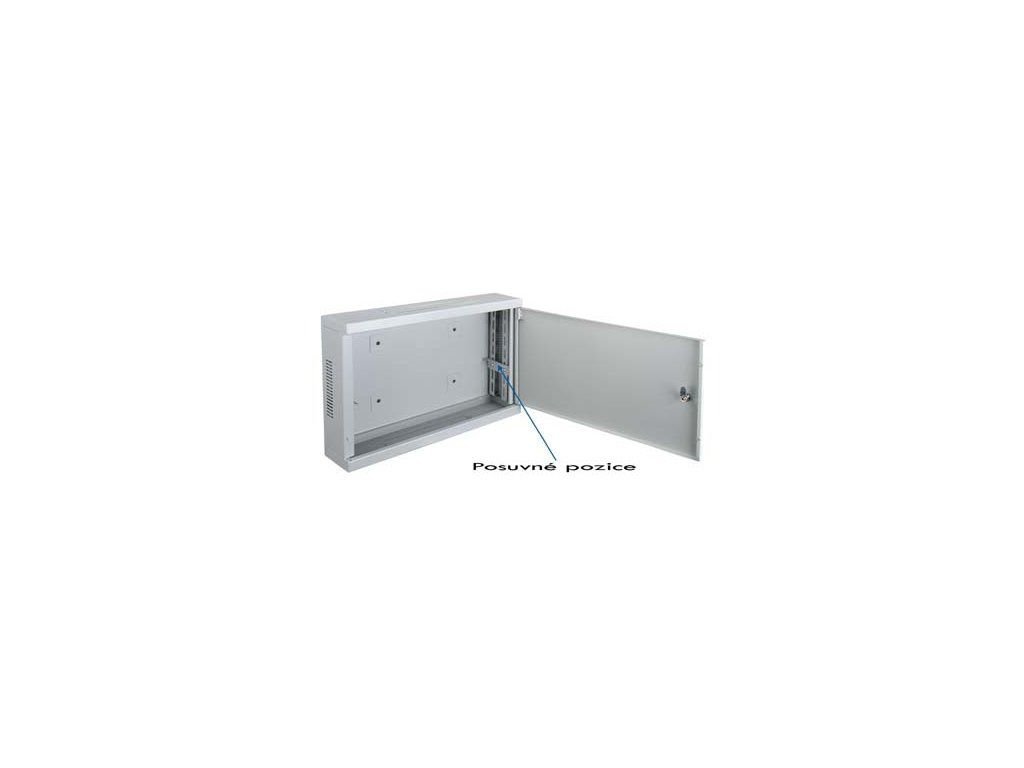 Vlastnosti: * vlastní odvětrávací otvory pos stranách rozvaděče. * nastavitelné pozice vertikálních lišt * z čelní strany je rozvaděč osazen plechovými dveřmi se dvěma panty * zámek na klíč s jednobodovým zamykáním * v zadní části jsou předchystány otvory pro uchycení na zeď * horní a spodní průchody pro kabeláž * barevné provedení: šedá
