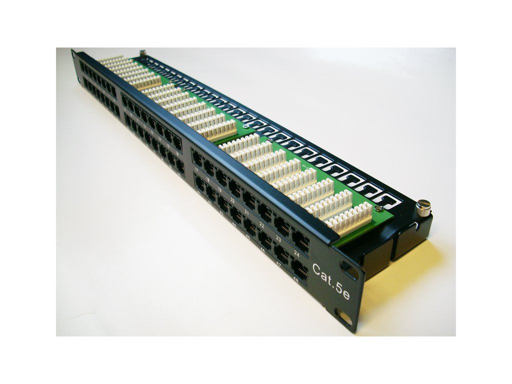 19'' UTP Patch panel DATACOM 48 port- 19'' Patch panel určený pro montáž do 19'' datových rozvaděčů- 6 x 8 pozic zářezového pole LSA krone- výška 1U- cat. 5e- horní zářez- včetně vyvazovacího panelu- barva černáDodatočné parametre