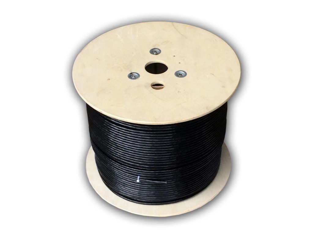 DATACOM S/FTP drôt CAT7 PE, Fca 500m cievka, plášť čierny OUTDOOR