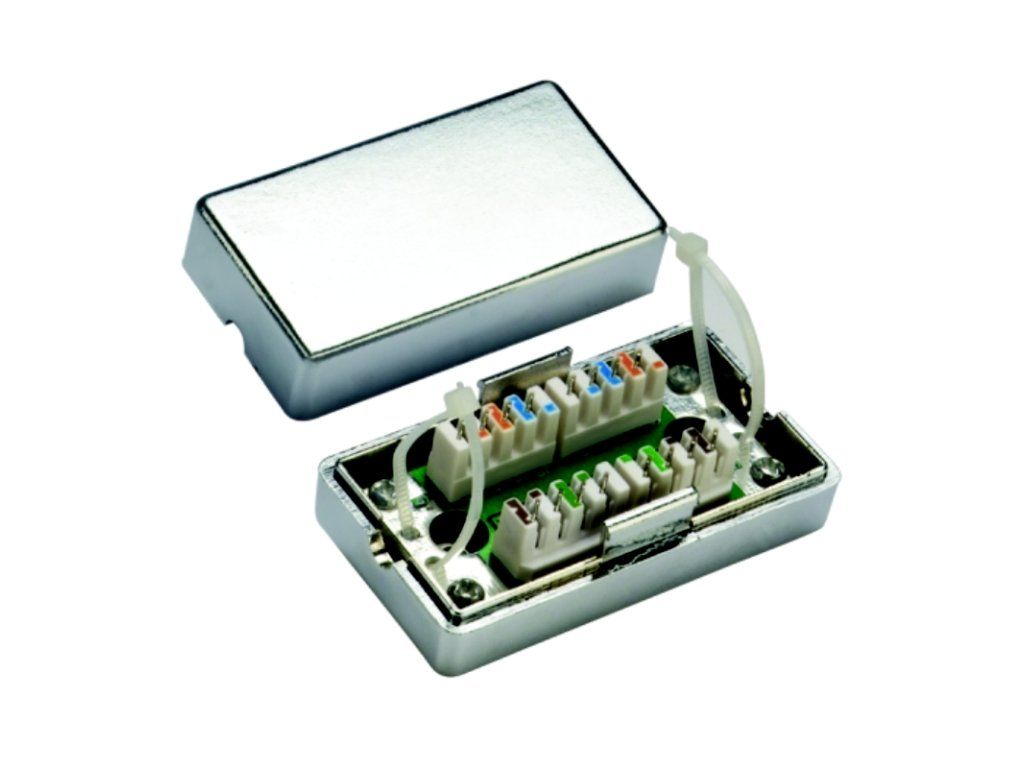 Stíněná spojka cat.5e pro spojení dvou kabelů pomocí zářezového pole.