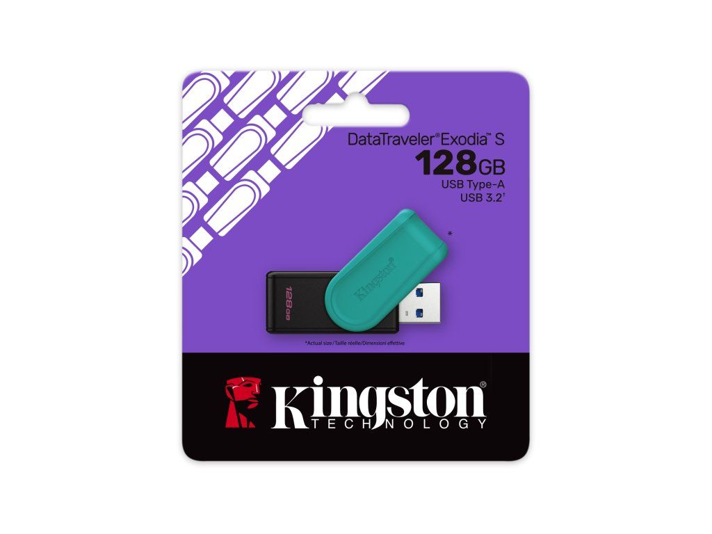 Kingston DataTraveler® Exodia™ S přináší rychlost USB 3.2 gen 1 (= USB 3.0) a konektor USB-A. * Otočná krytka chrání konektor * Operační teplota 0°C~60°C * Rozměry 57mm x 19mm x 11.8mm * Váha 8,72g * Kompatibilita operačního systému: Windows® 11, 10, macOS® (v.10.15.x +), Linux (v. 4.4 +), Chrome OS™Dodatočné parametre