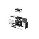 Prevedenie skrine:Midi Tower; Farba skrine:Čierna; Počet pozícií 3.5" (HDD):2; Počet interných pozícií 2.5":1; Vybavenie PC skrinky:Priehľadná bočnice