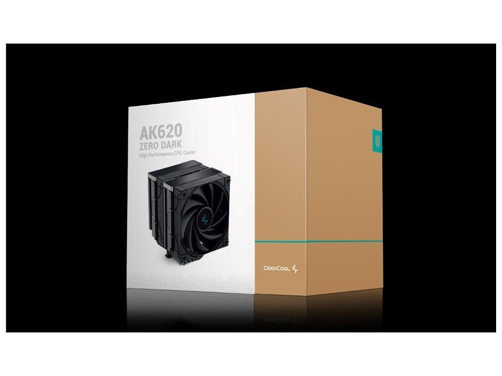 DeepCool AK620 ZERO DARK je celá čierna edícia dominantného vysoko výkonného chladiča CPU AK620. Rovnaké materiály prémiovej kvality so šiestimi pokročilými medenými tepelnými trubicami, hustý chladič s dvojitou vežou a dve tiché ventilátory FDB tvoria výkonnú víťaznú kombináciu pre vysoko výkonné chladenie v dizajne ZERO DARK raven.