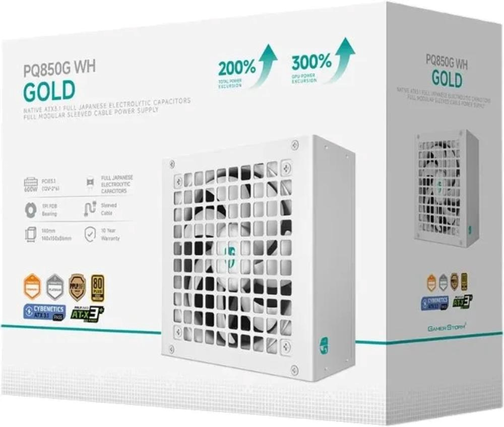 DEEPCOOL GAMERSTORM zdroj 850W PQ850G WH, 120mm, Plně modulární, 80+ Gold, ATX 3.1, bílá